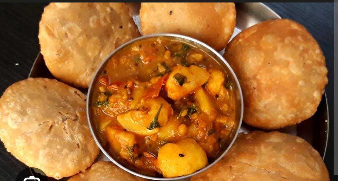 Aloo Kachori: Crisp, golden deep-fried flatbreads stuffed with spicy mashed potatoes.
