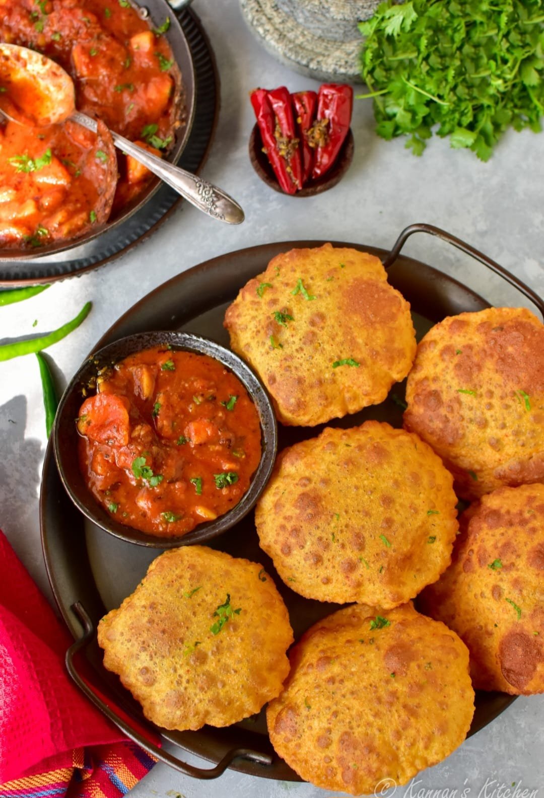 North Indian Style Aalu Kachori ki sabji with 6 pcs Kachori